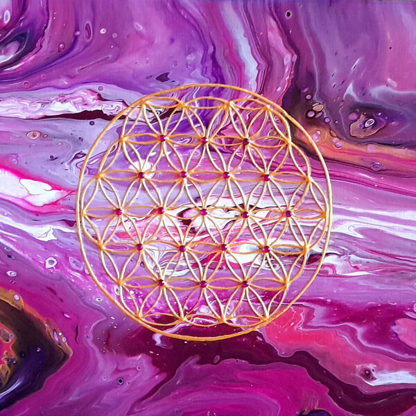 Mandalas lift the energy in spaces and in people through structures that bring clarity. A sense of well-being is created. They counteract disturbances in the spatial field and dissolve "energetic pollution," resulting in an empowering and harmonizing effect. As a meditation tool, mandalas strengthen mental strength and stimulate personal development. They support the attainment of a state of mindfulness and transcendence, improving the flow of mental, emotional, and physical energy. Mandalas are gateways for light and positive impressions from cosmic healing sources. They convey balance, harmony, spiritual presence, clarity, and centeredness as a counterbalance to our turbulent times.